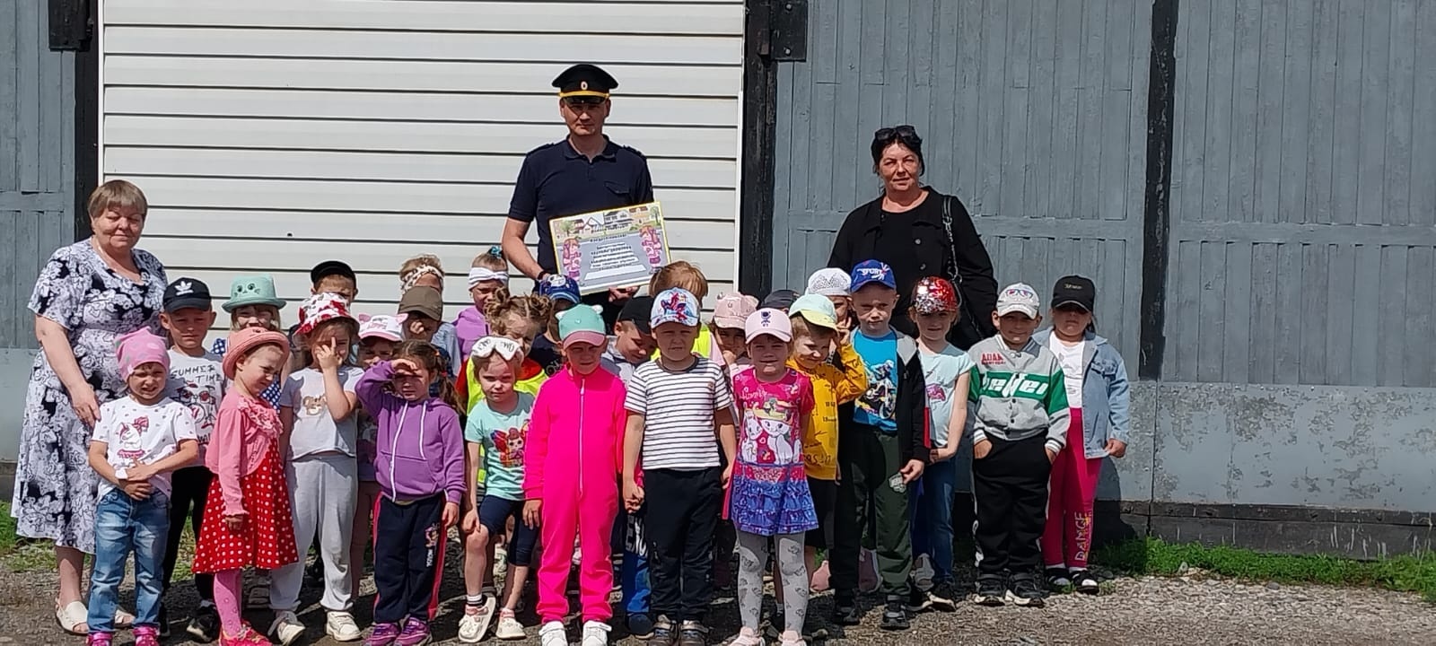 В качестве подарка ребята вручили сотрудникам автоинспекции яркий и познавательный лэпбук о правилах дорожного движения, который с любовью изготовили дети старшей группы вместе с воспитателем Прокопчик О.В.